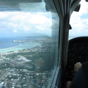 座学をみっちりやった後に操縦するのかと思ってましたが、簡単に操縦方法を書いたペーパーを渡され、それを読んだ後、すぐにセスナに乗り込んだのは戸惑いましたが、地上走行から離陸、旋回、着陸まで、ほとんど自分で操縦できたのは非常に良い経験となりました!パイロットの方は日本語だったので安心できましたし、同乗した 嫁と娘にも気を使っていただき、上空からの観光スポットの説明や娘のスマホでたくさん撮影をしていただきました。当日は風が強かったのですが、思ってた以上に簡単に離陸でき、あれよあれよという間に高度数百mまで達し、緊張しながら着陸までさせていただけたことはよい思い出となりました。嫁、娘も上空からグアムの観光スポットを見ることができて喜んでました。