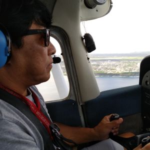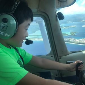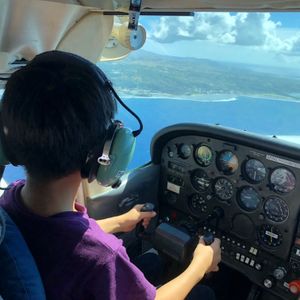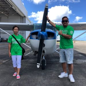 子供のころからの夢、諦めていたところセスナの体験操縦のことを聞き、66歳遅かったのですがチャレンジしました。時間にして40分程度の体験操縦ですが、離陸から着陸まで体験出来て最高に興奮しました。空から見るグアム島とても美しく素晴らしい景色でした。まさか、自分が操縦していると思うと信じられない思いです。操縦しているところもスマホの動画を撮っていただき良い思い出となりました。操縦にあたっては、指導教官の丁寧かつ的確な指導を受け安心して楽しめることが出来ました。人生100年といわれる昨今、再び操縦出来るよう新たな目標が出来た思いです。本当に素晴らしい体験を提供していただき有難うございました。