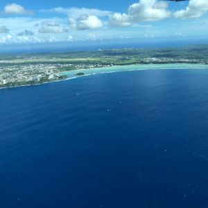 訓練当日は、1時間グアム一周のフライトで、アンダーソン空軍基地も上空から見ることもでき、着陸時は薄暮で滑走路の点灯もありとても素晴らしい景色でした。