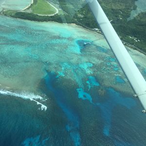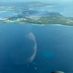 空港から離陸してタモンを眼下に見ながら上昇していきます。海の色がハワイとは違いスゴク綺麗でした!