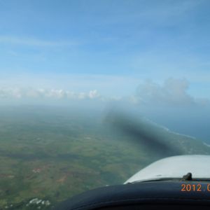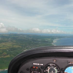 8年ぶりの体験操縦です。8年前の機体と同じでびっくりしました。当日はグアムとしては珍しく、この時期にグアムで台風が発生しました。翌日どうなるのかわからないということで、行った当日も他の2社は早々に店じまい。午前中に電話した時も、正直わからないとのことで、15時に再度連絡させてもらったところ、行きますとのことで、空港へ。ちょうど少し風も止んだところでしょうか。それでも後の同乗は酔いそうなので、別々に乗って行って来ました。海上は安定飛行でしたが、着陸は操縦桿を右にいっぱい切っての着陸で、横向きから真っ直ぐに立て直す横風着陸に感動でした。せっかくの機会でしたのでチャレンジングしていただいたスタッフの皆様、本当にありがとうございました。次回は島一周に挑戦したいものです。