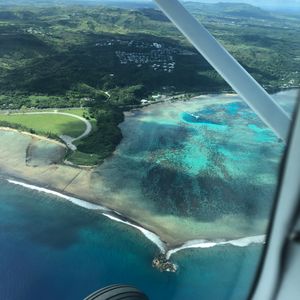 夢のような体験でした。無線以外の全て(エンジンをかける所から)をさせてもらえます。エンジンかけて、地上走って、滑走路から離陸して、ぶらーり飛んで、着陸まで。よく考えたら、素人が日本では絶対にできない経験です。自分は訓練コースを選びましたが、エンジンかけから着陸までは普通のコースでも体験できると思うので、どれを選んでも良いと思いますよ!詳しくは現地で聞いてみてください!日本人のインストラクターの方もいますし、飛行機について何も知らなくても心配ありません!普段は地上から見る観光地も、上から見るというだけで、また違った印象を持ちます。個人的には観光ホテルが建ち並ぶタモン上空の景色が印象に残っています。軽飛行機ならではの、ゆっくりとした速度での景色の流れが綺麗でした。写真も動画も自由に撮れますし、自分を撮ってもくれます。写真撮りたいと言えば、インストラクターの方が代わりに操縦してくれます。操縦する自分を動画に残すのは、動画オプションがある関係上、事前に相談したほうがいいかもしれません。自分は動画オプションも頼んだので何も問題有りませんでした。