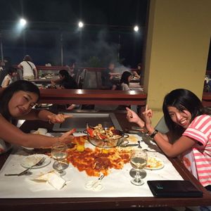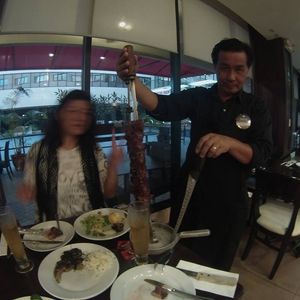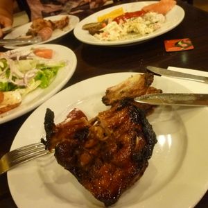 初めてのシュラスコなので、楽しみでしたが、体験談のある通り、時間にルーズな所があり、今回は送迎なしの早目にチェックインをしてましたが、いざ時間になると、「まだ用意できてないし、今からメンバーミーティングだから少し外で待ってて」とありさま、まっ想定内ですwww。10分待つことようやく案内されました。一番早く入ったので、サラダバーは山森でおいしかったです。メインの肉料理は確かにうまい!特にチキンがおいしかったです。また再利用したいお店でしたね。ルーズな時間規定を気にしないならwww