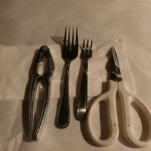 飲み物を注文して待っていると、スタッフがエプロン、おしぼり、カニバサミ、フォークを持ってきてくれます。