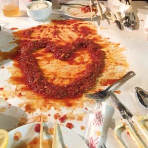 こちら、ベビー用のウェットティッシュを大量に持っていたのでなんとかなりましたが、あらかじめテーブルにたっくさんおいといてもらえると嬉しいなとおもいました。