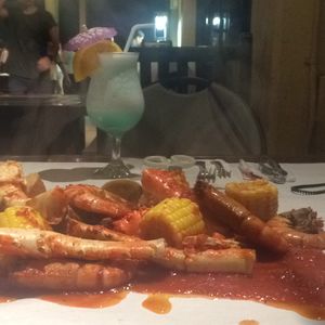 シーフードが食べたいので検索したところ、モヤモヤさまぁ〜ず2でやっていたCrackin' KitchenがセイルズBBQで4月に新メニューとして加わったと知り、一度はやりたかったので迷わず予約しました。席につくとテーブルに白い紙。これから始まるワイルドなディナーにワクワク感が止まらず興奮状態。それを静めるべく、とりあえずビール。ビーチからの心地よい風が、リゾート地ならではの開放感を漂わせます。メインが運ばれる前のビュッフェでの食事も、友達との会話も、より一層楽しく感じられます。ついにシーフードの登場。店員さんがビニール袋から豪快にドバーっと!おぉー!ヤッター!っとつい声に出てしまう演出。すぐさまカニに飛びつき殻ごと食らいつく変わり者の友達。手づかみならではの楽しさが皆を笑顔にします。味は抜群!辛さも丁度良く、ビールに最高。カニの身の大きさも量も大満足。残ったソースにパスタを絡ませて食べたいところでしたが、すでにお腹いっぱい。次回は絶対食べます。シーフードもグアムもますます大好きに。素敵な時間を過ごす事が出来ました。
