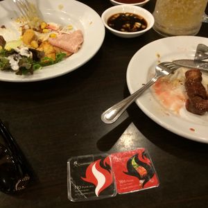 おもしろそうだったので、予約しました。口コミどおり、NOのフダにしてても、回ってきました笑。いらないと言ったらプレミアムだからだと。お〜、それは、逃せない!そして、やはり美味しかったです!そーゆーのは、嬉しいですよね^o^サラダバーもデザートもあるし、こちらで予約したプランにはドリンク1杯ついてたので、ビールを!事前にこちらの口コミで調べてたので、自分達のペースでフダをNOにしたりYESにしたりしました。欲しいお肉の時を見計らってYESにしたり笑。面白かったです。私は全然食べないので、全く元は取れてないと思いますが、パフォーマンス代ですね笑。日本人だらけではなく、地元の方の方が多くて、海外を感じれました。皆さん、ずっーとフダはYESでした、すごい!^o^誕生日の方にはサプライズを行ってて、みんなで拍手したり楽しい夜でした、送迎もありがたかったです^o^