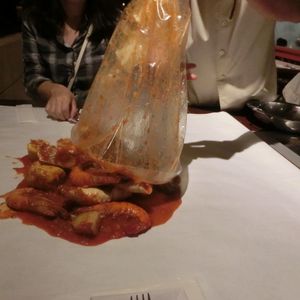 店につくとテーブルには大きな紙がひかれてあり、そこに直接店員さんがいっきにシーフドを乗せてくれます。