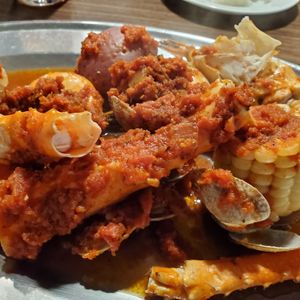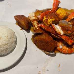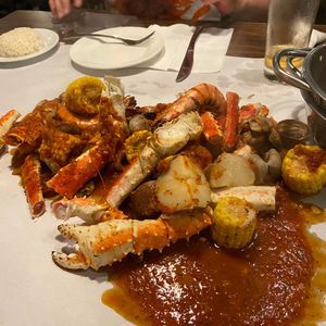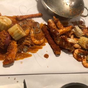 大人3人子供1人で行きました。量的にシーフードよりとうもろこしとじゃがいもがメインな感じでした。味はノーマルとスパイスで分かれていてスパイスでもそんな辛くなかったです。味は美味しかったです。