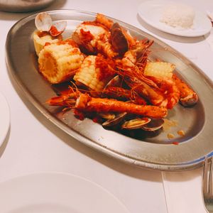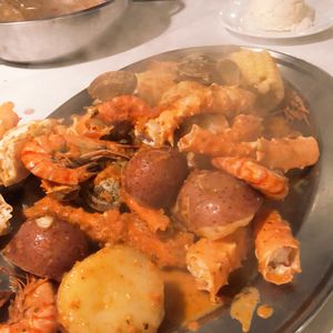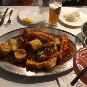 蟹や海老、アサリがたくさんなので、みんなでシェアして食べるのにちょうど良いです。ライスも付いていてトウモロコシやジャガイモなどもあるのでけっこうお腹いっぱいになります。室内なのでクーラーも効いていて快適でした。寒がりの人は上着を羽織っているといいと思います。私たちは18時の予約でしたが、ちょうど日の入りのタイミングで、一番景色の見えるビーチ寄りのテーブルにしてもらえて、太陽が沈んでいくところもよく見えました。スタッフさんがどの人も気さくで、頻繁にテーブルを廻ってくれてたくさん話し掛けてくれたり写真を撮ってくださったりと、とても満足のいく時間でした。