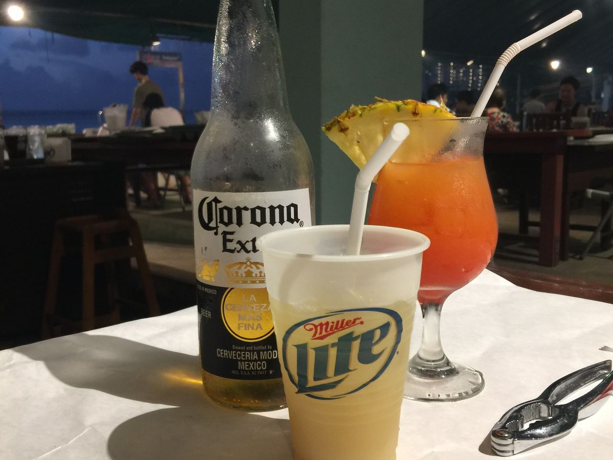 前回は予約時間を1時間もオバーしてからテーブルに案内されたので、今回もすぐには食べれないと思っていましたが、なんと、ホテルからピックアップされて到着したらすぐにテーブルに案内されました。別料金で飲み物を注文して、ほどなく飲み物が来ました。しばらくして、料理も運ばれ、前回同様、おいしいカニなどを手づかみで豊ばりました。