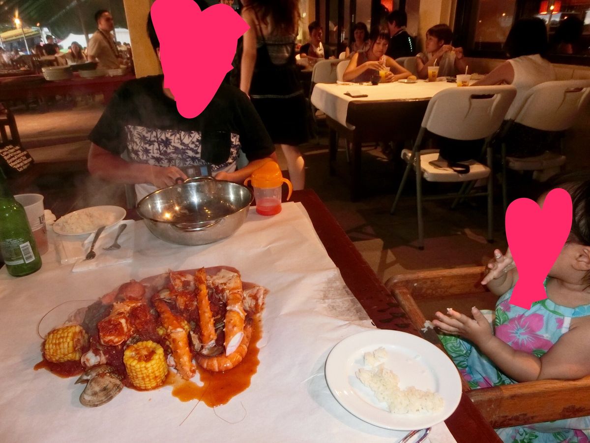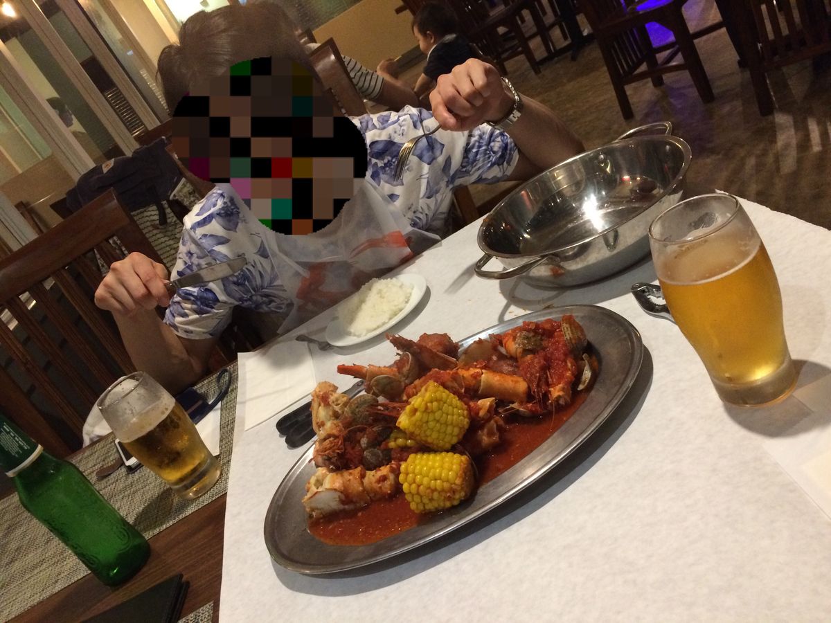 ハワイで食べた手づかみシーフードがグアムでも食べられるとのことで出発前に予約。