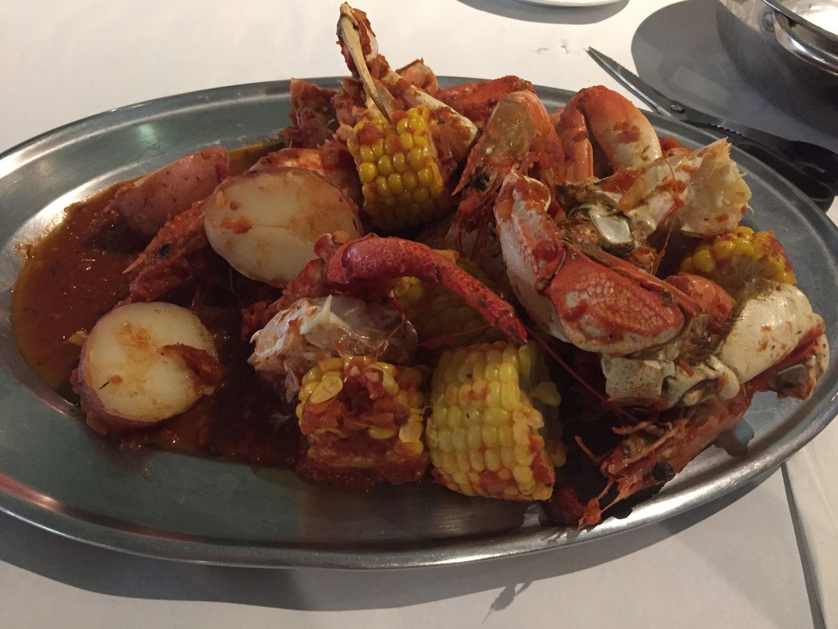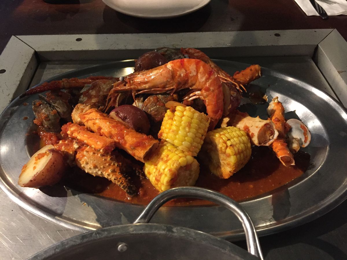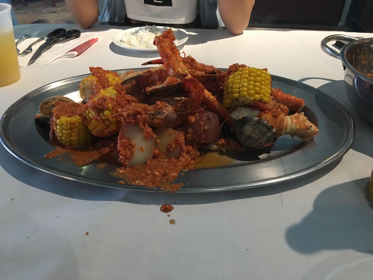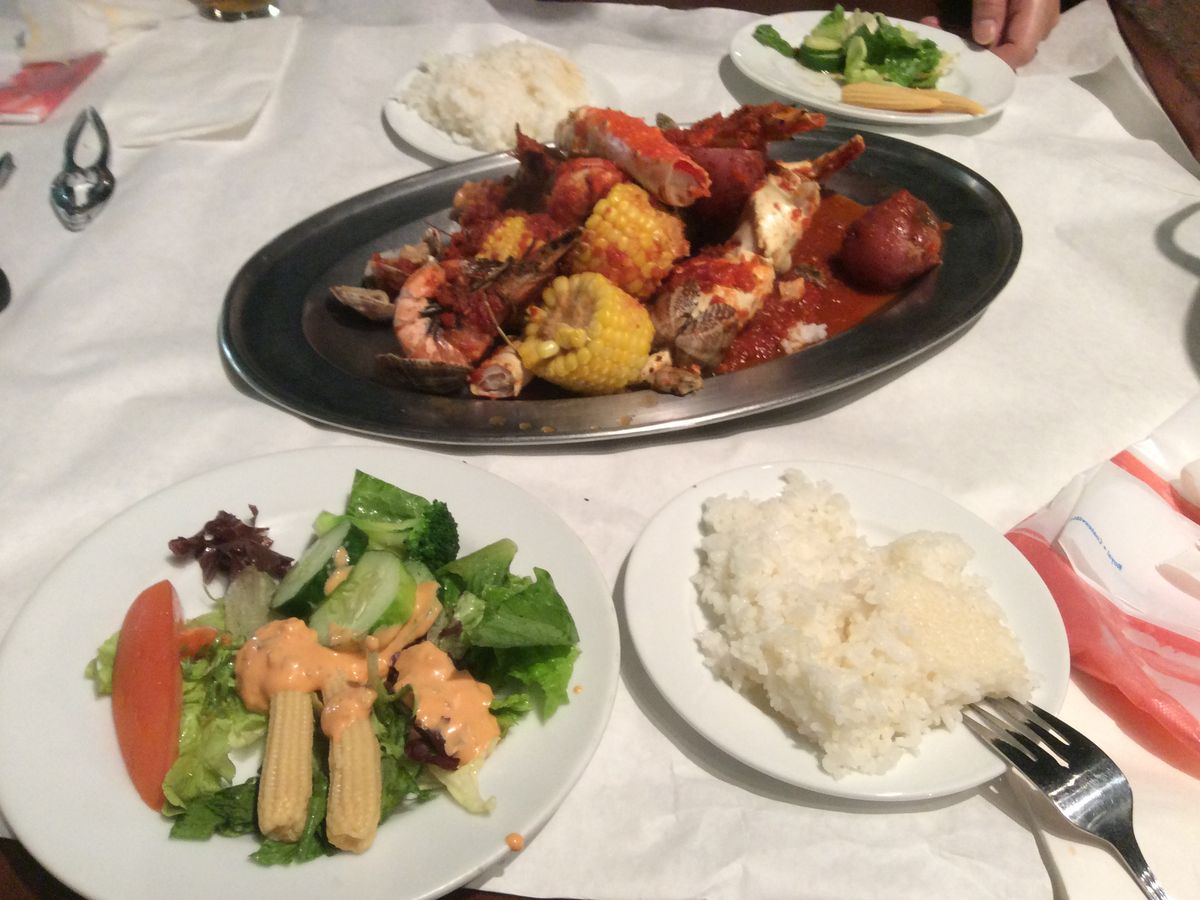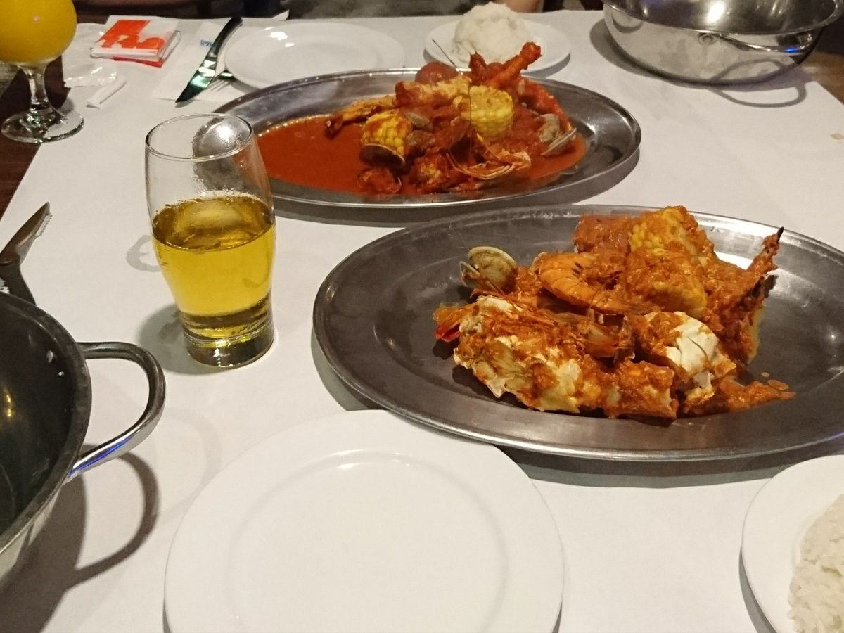 クラッキン・クラブでしたが、想像してたのとは若干違ってて残念でした。テーブルいっぱいにひっくり返されると思いきや、御丁寧な感じで皿に盛り付けされて来て、そのまま手で食べたのですが、やはり想像してたのとは違ってて違ってて。もっとテーブルいっぱいにガシャ〜って感じを想像してたもので……。