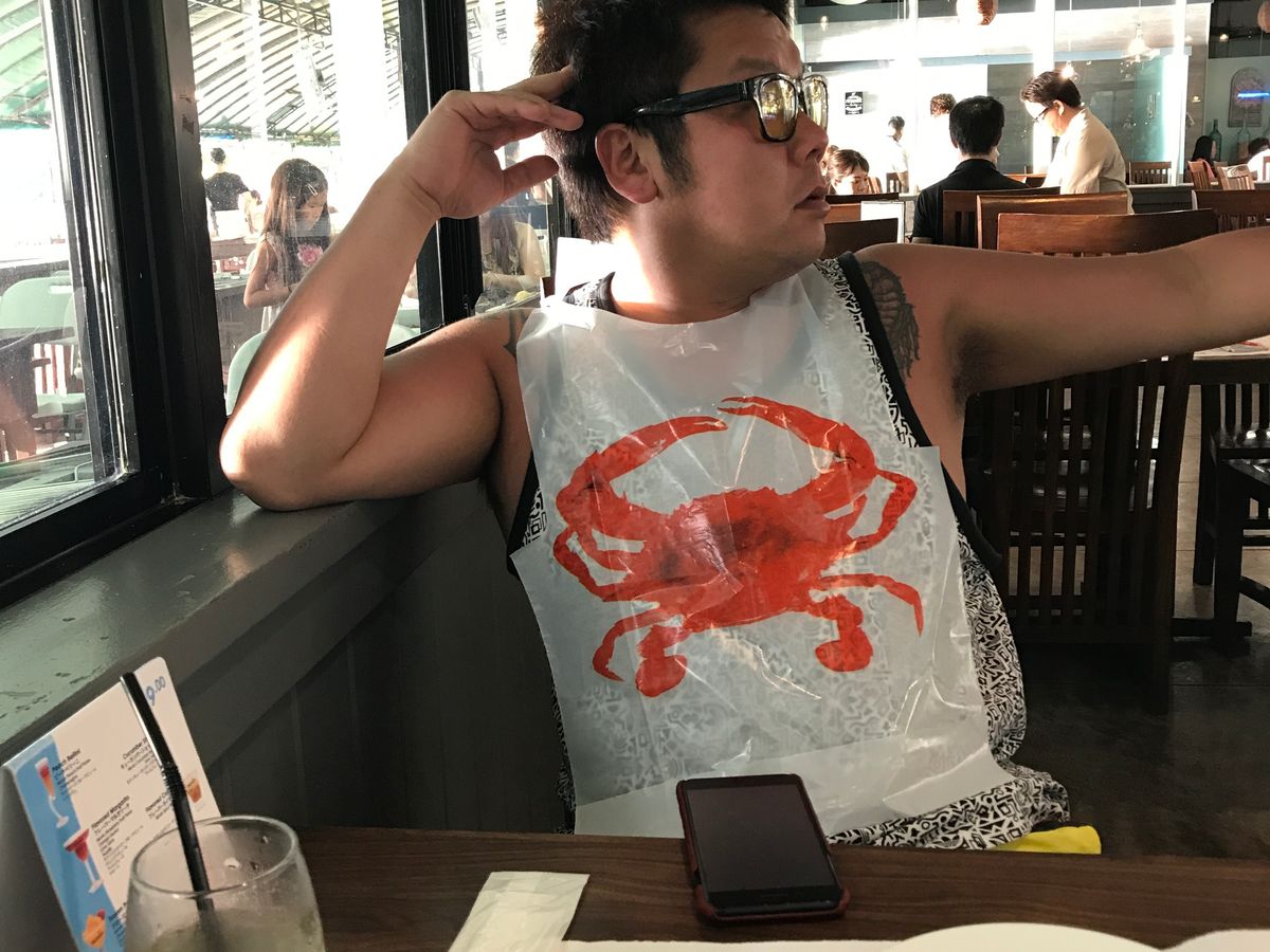 日本人だらけでバーベキューと同じブースなので煙が凄かったです。蟹は美味しいけどたくさん食べる人ならボリュームがちょっと足りないかも。