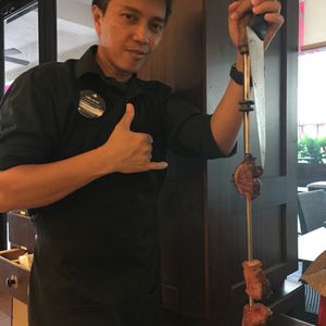 今回3名で行きました。次々に焼き立ての肉が大きな金製の串に刺さって出てきて食べるのに必死でした。休憩したいときはテーブルの札をひっくり返せばストップするので時間を気にせずゆっくり食べることが出来ました。是非また機会があれば利用したく思います。