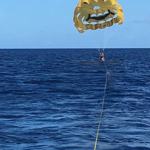 パラセーリングは初めてしましたがとっても気持ち良いです。海であんなに高いところからまわりを見ることが出来て最高でした!しかも途中海に足が着くところまで降ろされ、また上に上げられるなど遊んでもらいました。
