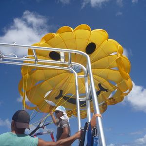 ご参加ありがとうございました。天候も良く海も穏やかな時のパラセール楽しんで頂き良かったですが、それに反し バナナボートは 外洋で行う為 その日の海のコンデションにより 多少アクティブになったり そうでなかったり致します。また 弊社のバナナボートは 故意に転倒等は 安全上致しませんので 予め 御了承頂ければ幸いです。またのご参加 スタッフ一同 心よりお待ち申し上げております。