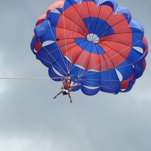 人生初のパラセール、上空から見上げる海一面の景色が最高でした。ちょっと風が強かったけど、一生の思い出になりました。