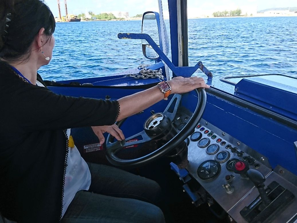 海上では運転もさせてもらえたり、プチ観光もあり充実してました