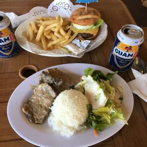 ランチは、チーズバーガーとポークプレートとビールをいただきました!