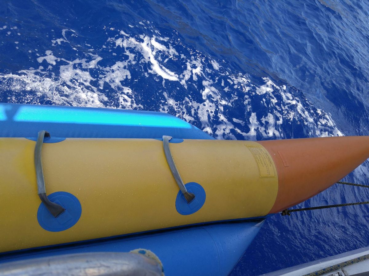 その後、帰りのクルージング中にバナナボートを体験しました。帰りの道中を利用して比較的ゆっくりな船の速度で引っ張っているのでスリルはそれ程ないですか、バナナボートも安定しているので小さい子でも大丈夫です。