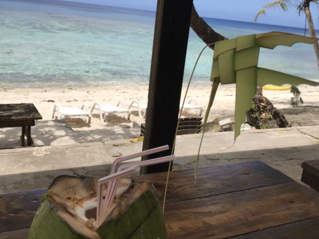 その後、終了と思われホテルに送り届けられるというハプニングがありましたが、無事にファイファイビーチへ。バギーやココナッツパフォーマンスでお兄さんたちが楽しませてくれました。ただ、シュノーケリングだけは残念!魚はたくさんいたけど引き潮により海が浅すぎて楽しめなかった。