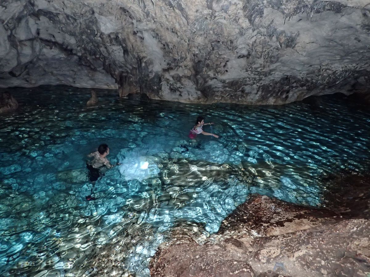 日本の鍾乳洞を綺麗にして水たくさん貯めて泳いだ感じ?