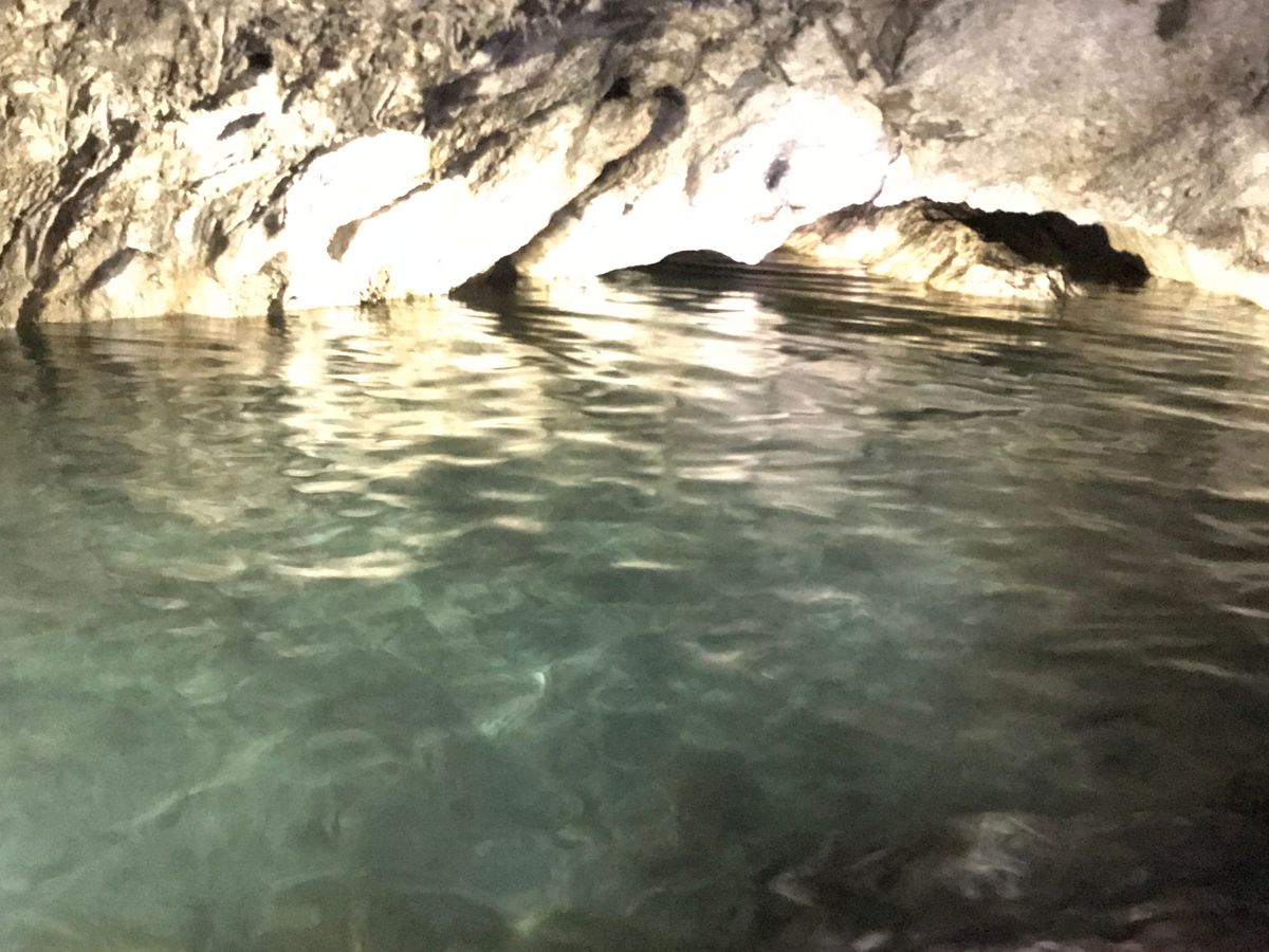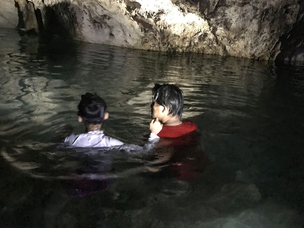 洞窟内はスタッフが持って来たライトで何とか内部が分かる位真っ暗。水が冷たくて気持ちいい。足がつかない箇所もあるのでライフジャケットは借りた方が無難。