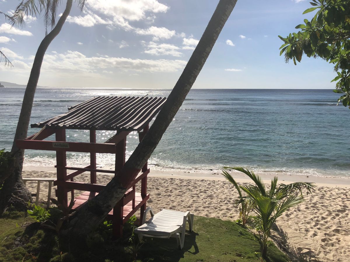 朝からホテルに車で迎えに来ていただいて、所要時間15分くらいでしょうか、2組のお客さんと共にビーチへ。車から降りたら、5分くらい少し険しい道を歩きます。探検みたいでワクワクしました。案内してくれたスタッフの方が、かっこいいし優しいし面白い人でした。重たい荷物を運んでくれて、本当に助かりました。1日の説明を受けたら、すぐに海へ。シュノーケリングは、靴も道具も貸してくれるので安心です。渡された餌の食パンを生まれて初めて海に投げ込みましたが、すぐに多数の魚が寄ってきて思わず叫んでしまいました。さほど泳げない私が、魚見たさに あんなに水に顔をつけて何度も潜るなんて自分でも驚きです!11時には、バギーを2周させてもらいました。2周目はスタッフが運転して娘が後ろに乗る形でした。中学生が喜ぶような楽しい運転の様でした。良い笑顔の写真を撮ることができて、感謝します。私は、、途中カーブでタイヤを取られてしまい焦りましたか、何度かバックや前進を繰り返して どうにか進めるようになった時には、万年ペーパードライバーな自分に自信が甦ってきてしまいました。貴重な体験でした。心配してスタッフの方が見に来てくれましたし、ホッとしました。12時から、ランチタイムでした。かなりアクティブに活動したせいか、めちゃめちゃ美味しいお弁当でした。量も私はちょうど良くて、お水は無料でした。椰子の実を割る実演も、かなり興奮して見ました。ココナッツのジュース、すごく美味しい!食べる物を食べたら、再度海へ。疲れたらハンモックやチェアーで横になりました。午後からは水温が温かいからなのか、魚が多く感じました。洞窟探検では、冷たい水にドキドキしましたが、すぐに慣れて水に入って深い所まで行ってしまう娘につられて、私まで少し潜りましたー。水圧が半端ないですが、こんな体験は なかなか出来ませんから是非してみてください!のんびりとしたプライベートビーチで 盛り沢山な1日を、ありがとうございました。きっと忘れられない思い出になります。またグアムに来たときは、必ず行きたいです。今日は、楽しかったでーす!