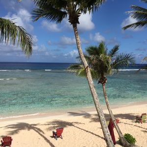海と砂浜とヤシの木だけの景色を堪能できました!タモンのビーチは周りにホテルがたくさん建っていて、リゾート感があってよいのですが、ココパームのビーチは人工物がほとんどない自然のままのビーチを楽しめるところが良かったです(*^-^*)