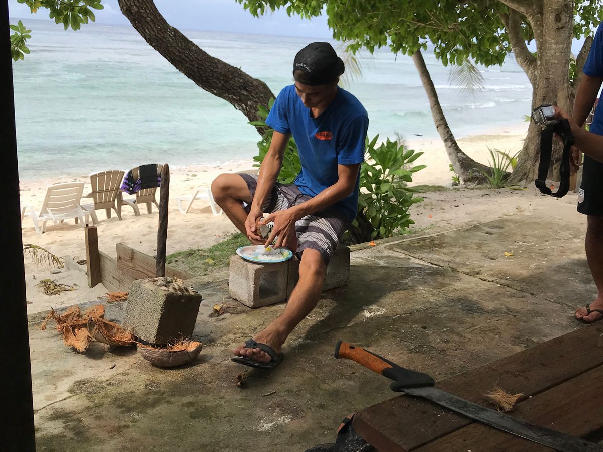 椰子の木に登ってくれ、新鮮なココナッツジュースをいただきました。美味しかったです。