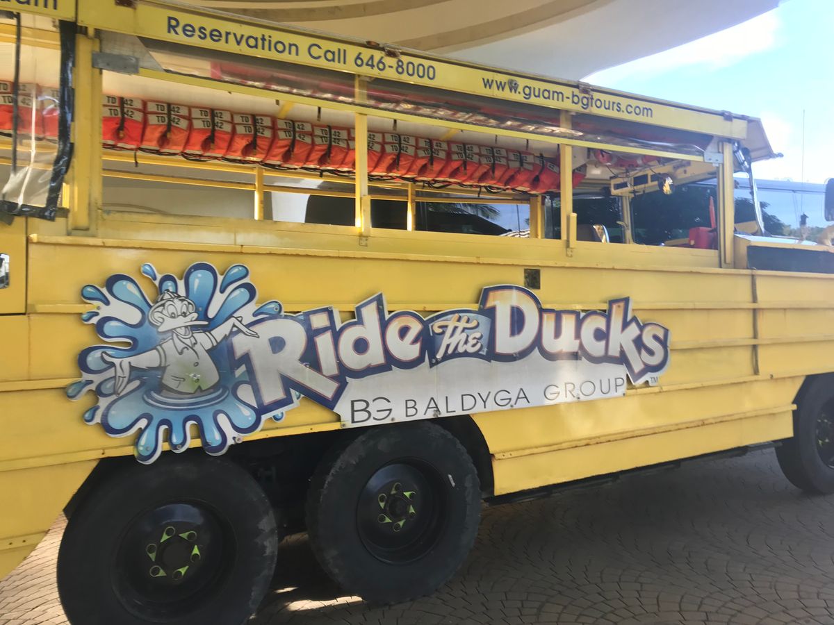 天気も快晴で、屋根付きのバスで45分くらい陸路を観光。結構スピードも出るし、アトラクション的で楽しかったです。ダックの笛を吹きながら、日本語の解説付きでグアム観光ができました。グアムは3度目でしたが、郊外をドライブしたのは初めてで、新鮮でした。そして何と言っても、陸から水に飛び込む瞬間が楽しい! 水路を20分くらい遊覧して、また陸に戻り集合場所まで帰りました。2時間のツアーでしたが、あっという間でした。また乗りたいです。