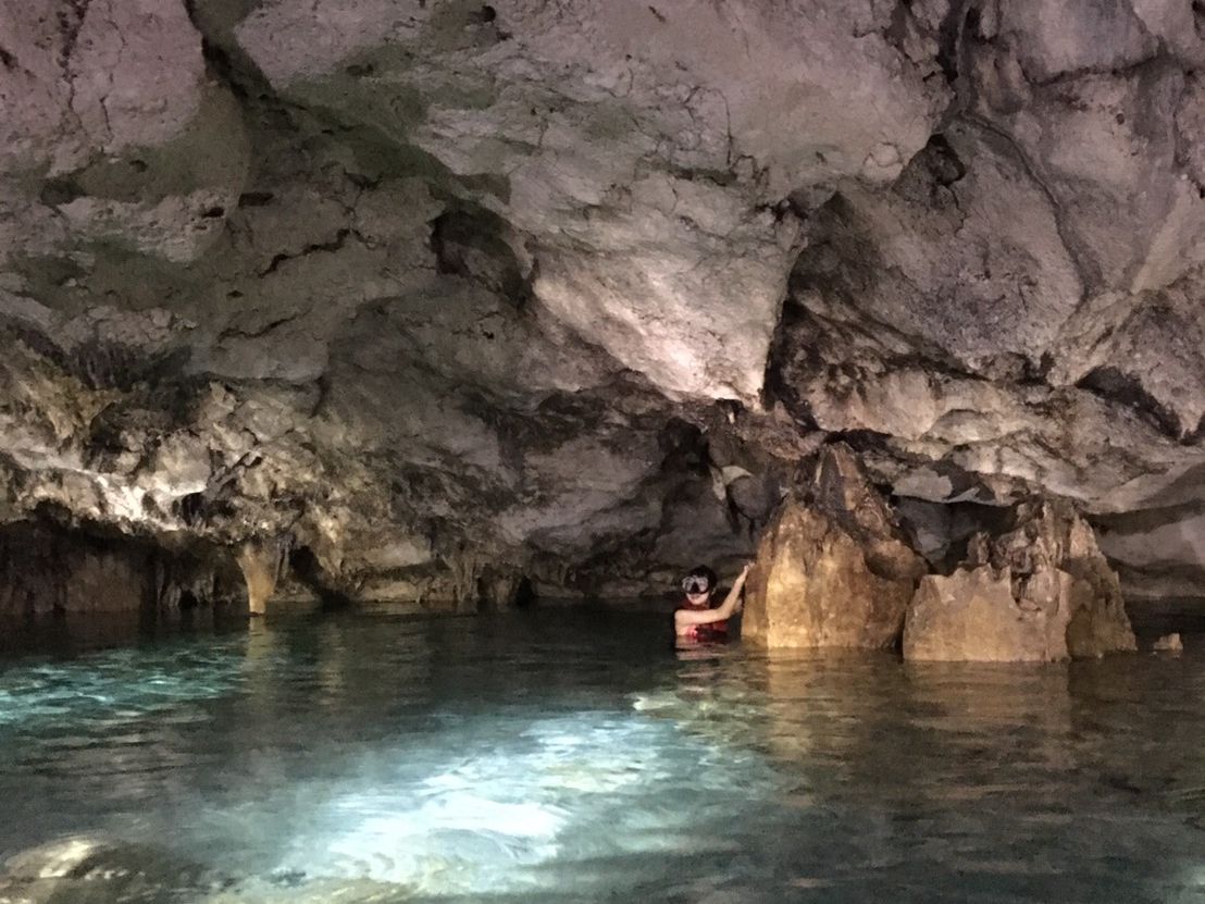 特に洞窟探検は水も綺麗で神秘的でとても人気です。(滑りやすいので注意してくださいね。)