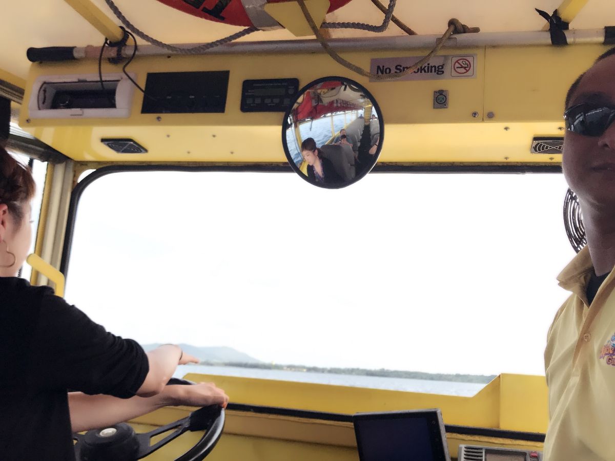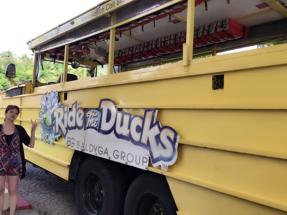 友達の希望で初ライドザダック!!水陸両用車ということでその辺を走ってすぐ海に向かって終わりなのかな〜?なんて思ってましたが、グアムの町や歴史を日本語音声で解説を聞きながら案内してくれ意外と楽しめました。アヒルの口に見立てた笛を事前にもらえるのですが、それを車内で音楽に合わせてみんなで吹いていた時は、なぜか一体感がありました。笑。海の中へダイブする時が一番迫力ありましたが、海の中を運転することもでき写真も撮って下さったのでいい思い出ができました。この日は、天気に恵まれましたが雨が降っている時でも楽しめると思います。時間がある方は、是非。