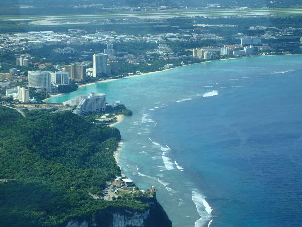 テルテル坊主を吊り下げてやっと晴れ渡ったグアム旅行の最終日。60分、グアム島一周の遊覧飛行しました。