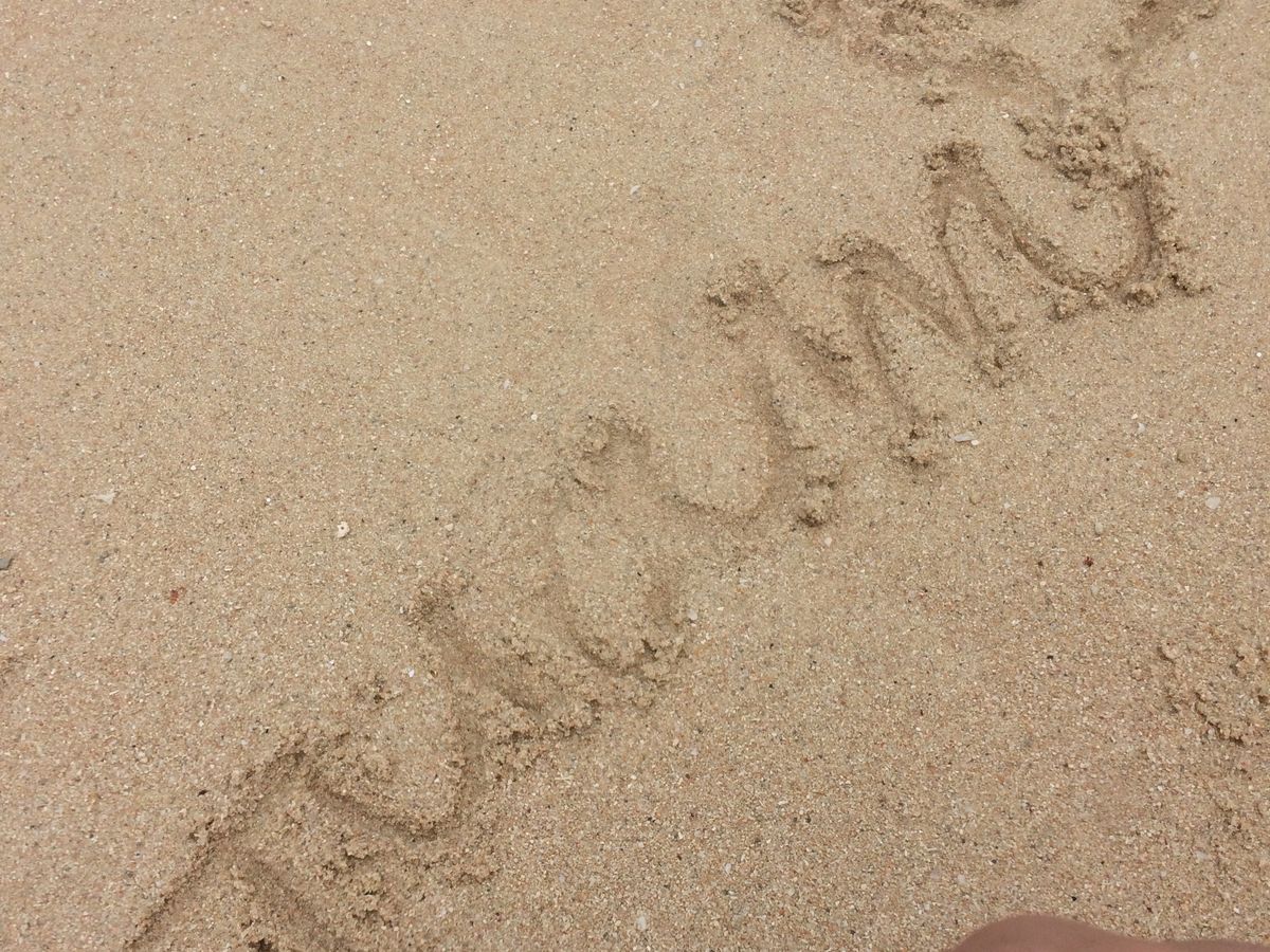 泳ぎ始めの数分で奥様が少し遅れ気味でいたものですから、スレートに「もっと前に出て来てください。」と書きました。