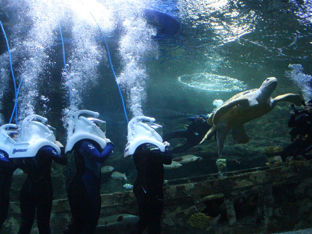 酔いやすいので船酔いを避けたかったのと、確実にカメに会いたかったのでこのシートレックを選びました。潜るときに耳は痛くなりますが、ちゃんと言われたとおりに対策して、少しずつ潜れば問題なかったです。最初は20分って短いかな?とも思ってましたが十分でした。サメも近くで泳いでましたが、知らんぷりされるのでまったく怖くなかったです(笑)サイズもそこまで大きくなかったですし!カメも魚もすごく近くでみれて感激しました♡スタッフの方がとてもよくて安心して楽しめます☆4人で体験したので、写真もUSBで購入しました!