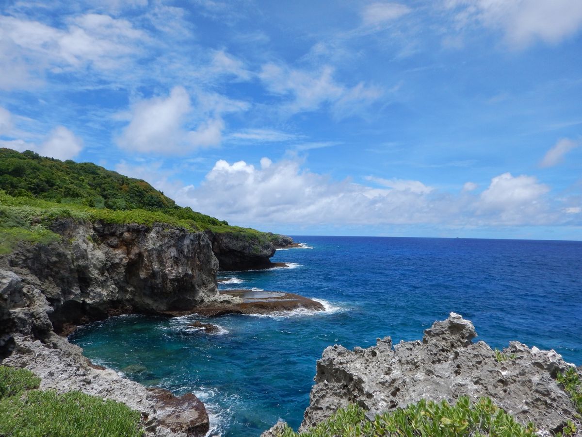洞窟での体験はもちろんですが、洞窟を出て海に出た時の景色のすごいこと!思わず歓声をあげました。グアムにこんな美しい場所があるとは。ツアーの解説にはこの海についてそれほど詳しくは書いていませんが、ここで食べたおにぎりの昼食は最高でした。