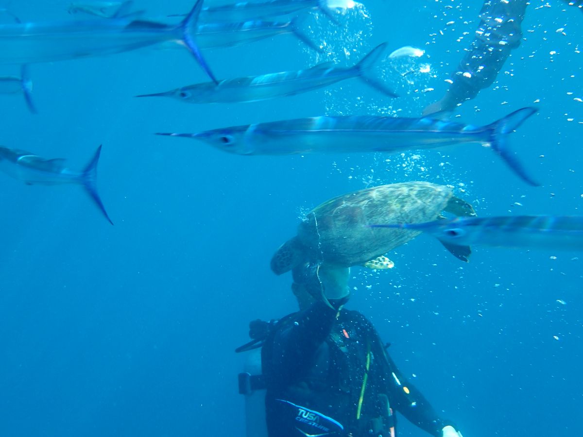 潜っていきなりウミガメを1匹見ることが出来ました!その他にも2匹連れも見れたそうです。