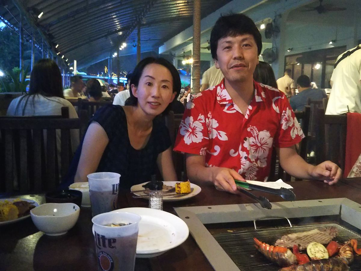 夕食として参加しました。当日はあいにくの雨模様でサンセットとはいきませんでしたが、雨の中、海で遊んでいる現地の人たちを観ながら食事が出来て楽しかったです。