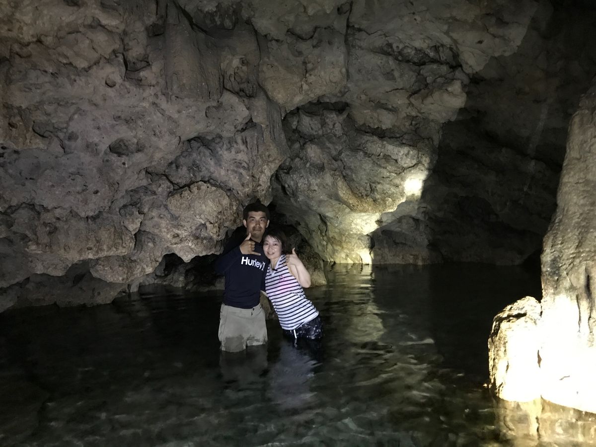 洞窟に入ると神秘的な世界。思わず化粧なんか気にせず潜って遊んでしまいました!