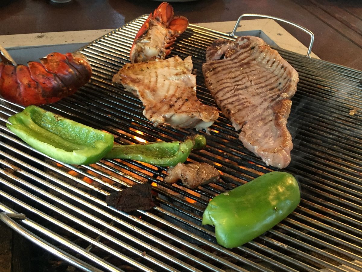 お肉はかなりのボリュームがあり、お腹一杯になりました。ただ、飲み物のコーラは炭酸がほとんどなく、砂糖水状態でした。また、火力が小さくて、なかなか焼けなかったため、店員に申し出ると、新しい練炭に交換してもらいましたが、その後の火力は逆に強力で焼くのが忙しくなりますが、その場の雰囲気を楽しみながら食事が出来たので満足できました。