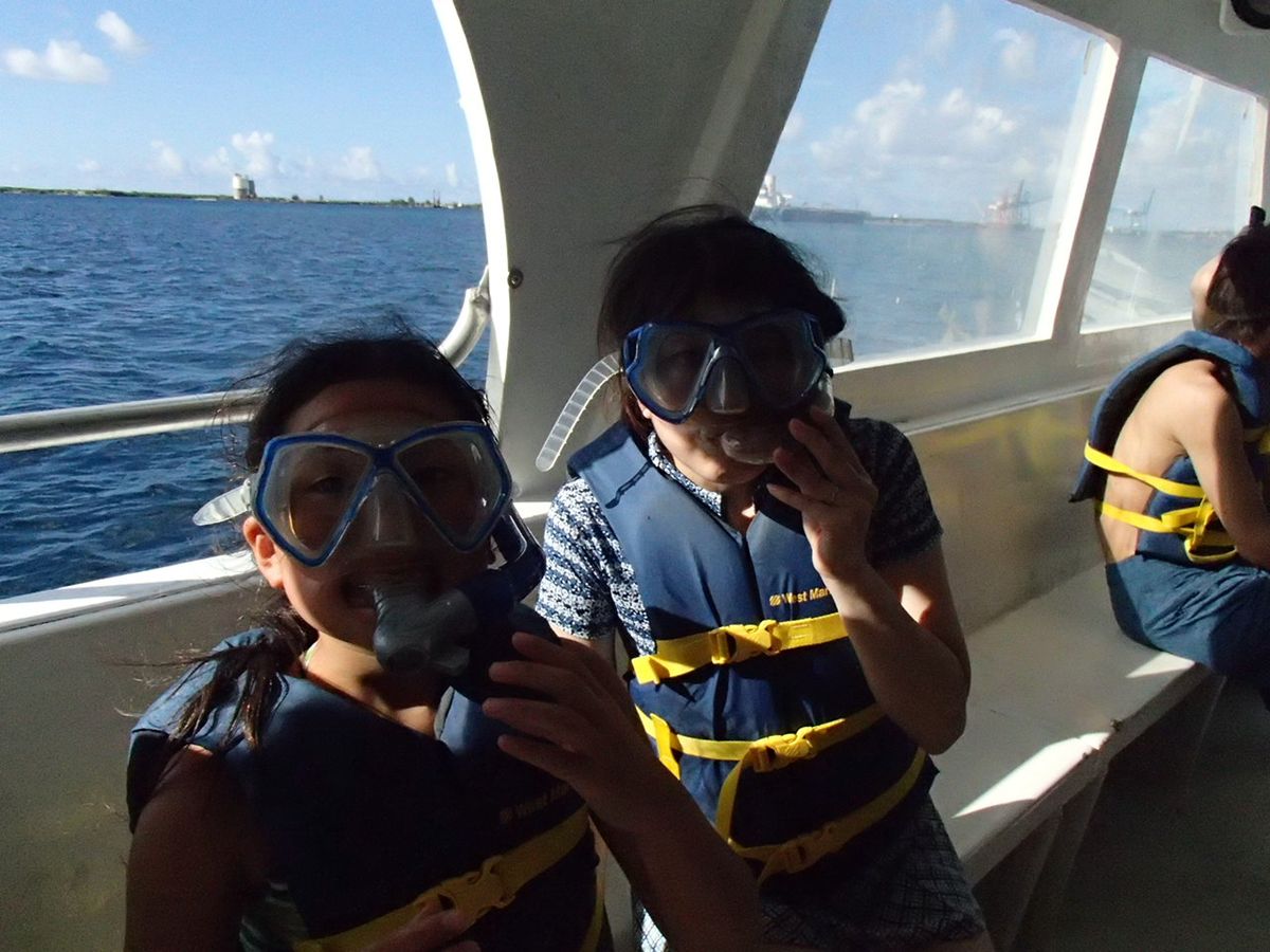 現地に着いたら、スキューバカンパニーのスタッフさん達がとても親切・サービス精神旺盛で、大満足の経験が出来ました★初めて自然を存分に楽しめました!笑。昼ご飯のカツ弁当、グアムに着き丸2日間お米を食べてなかったので、そしてこの絶景のなか食べれて、一層美味しかっです!( ◠‿◠ )絶対また行きます!イルカだけ見れなかったのが残念(>_<)日程合わず、私達は再挑戦不可能で…お土産をもらって終えました。