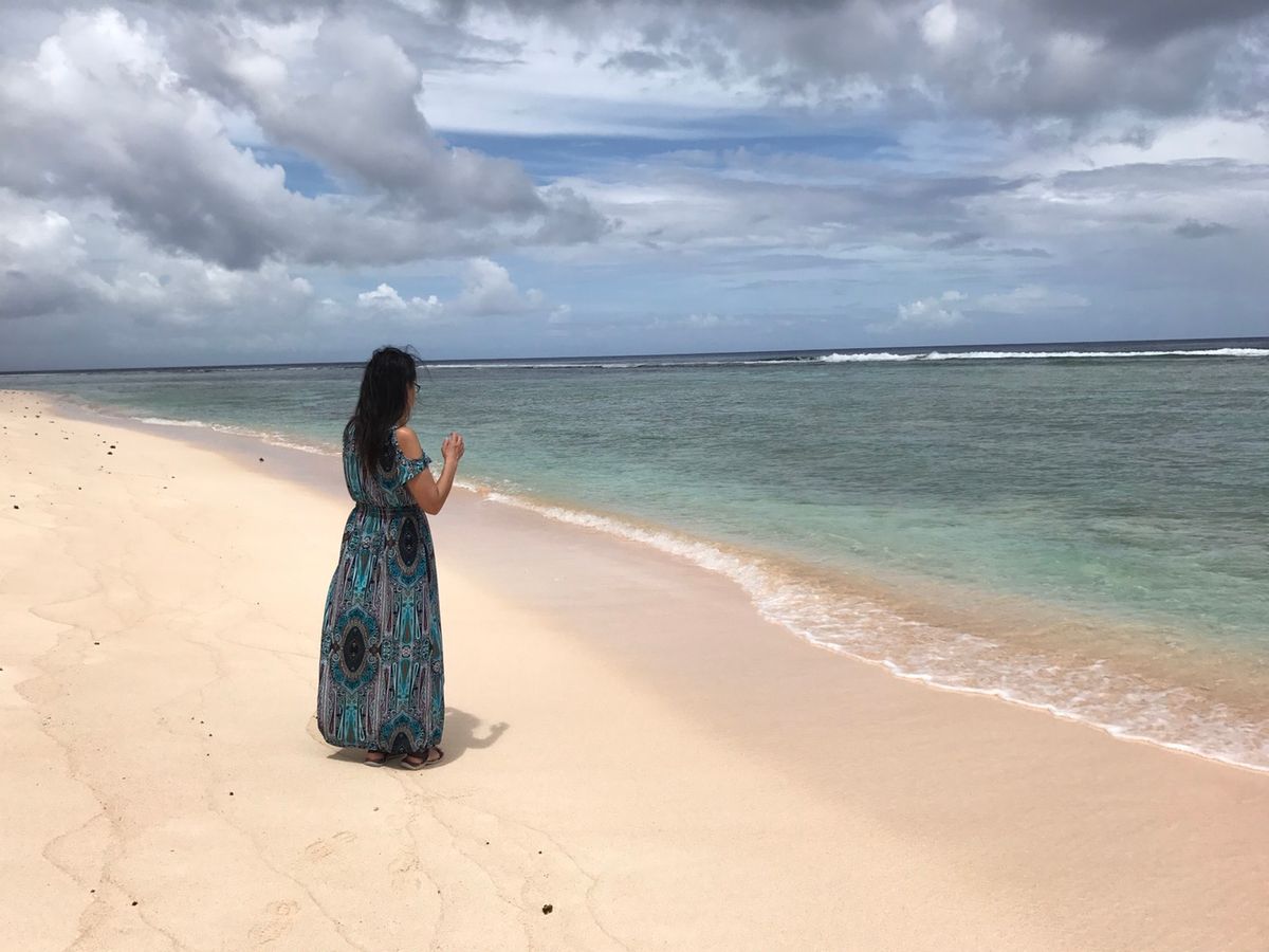 着くまでは少し遠く感じましたが、ついてすぐ綺麗な砂浜と青い空に感動しました。