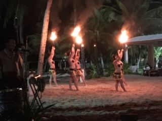 食事している直ぐ近くでファイヤーダンスやフラダンスが見られます。