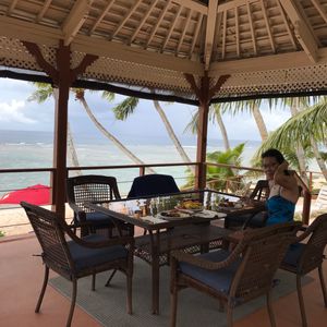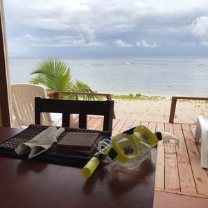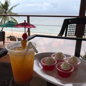 友人が誕生日間近だったので、前から行きたがっていたこちらを予約。当日、不安ながらも迎えの車が時間ピッタリに到着!さすが人気店、混雑してました!キャッシャーで名前伝えると並ぶ事なく席へ案内され、すでにサンセットが!もう、素敵でした。18時予約がオススメです。1番安いコースですが、野菜が食べ放題なのとパイナップル美味しい!満足です。ビールは緩いですが、氷いれればok!店員さんも気さくで優しい、パイナップルジュースプレゼントして頂きありがとうございます。また、利用したいです!帰りは目の前の砂浜で皆さん遊んでましたよ!
