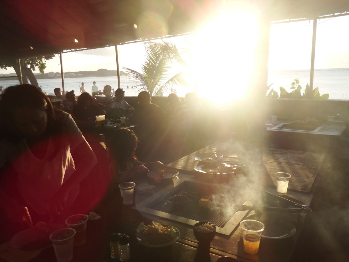 海に沈む夕日とBBQを堪能しました。アルコールも飲み放題で、お腹一杯になりました。