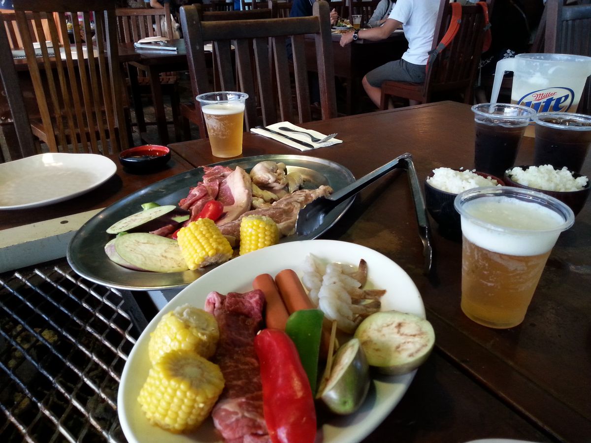 ここのBBQはとにかくボリュームがあり、女性だと食べきれず男性でも多い方は多いくらいのボリュームです。家族で行きましたが、全ては食べきれませんでした。ビュッフェの中にごはんもあるので、日本食が恋しくなりご飯食べたい人には向いていると思います。他にもサラダ、フルーツは食べ放題なのでバランスよく食事ができると思います。サンセットは席によって見えるか見えないかと行ったところです。浜辺に出た方がいいかなと思います。時期により卒業旅行もあるのでデートというよりはで家族や団体のが楽しいかなと思いました