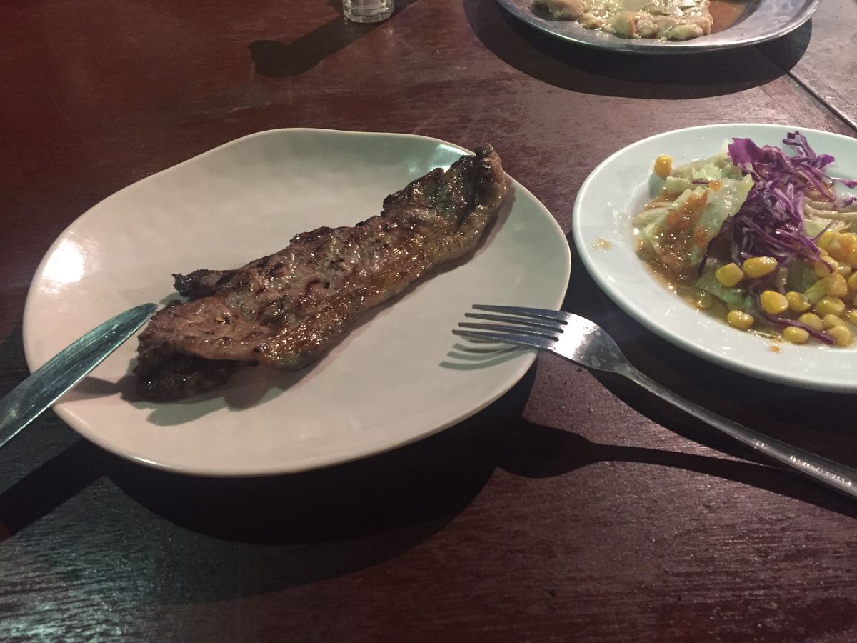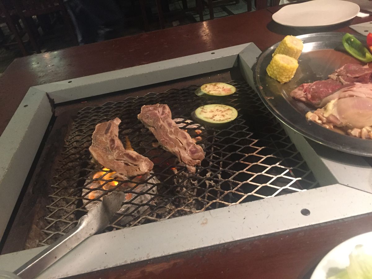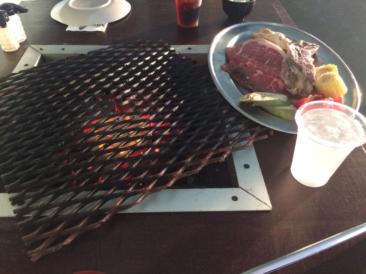 お肉は日本で食べる焼肉とは違い、大きく豪快さがあり、とても満足できました。サラダの野菜も新鮮でおいしかったです。ドリンクもなくなったらすぐに注ぎ足してくれて、とても気が利いていました。悪いところは外だと少し暑いことですが、それもまた夏を感じられるのでいい思い出になるとおもいます。
