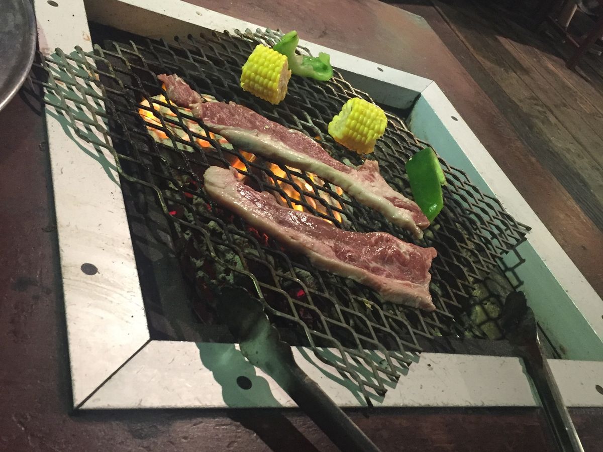 少し慣れない私たちはお肉を食べてる感が強くて辛かったけどめちゃくちゃ美味しかったし良い体験ができました!そのほかにコーン、ピーマン、ナスがプレートに乗って出てきました。とても美味しかったです。